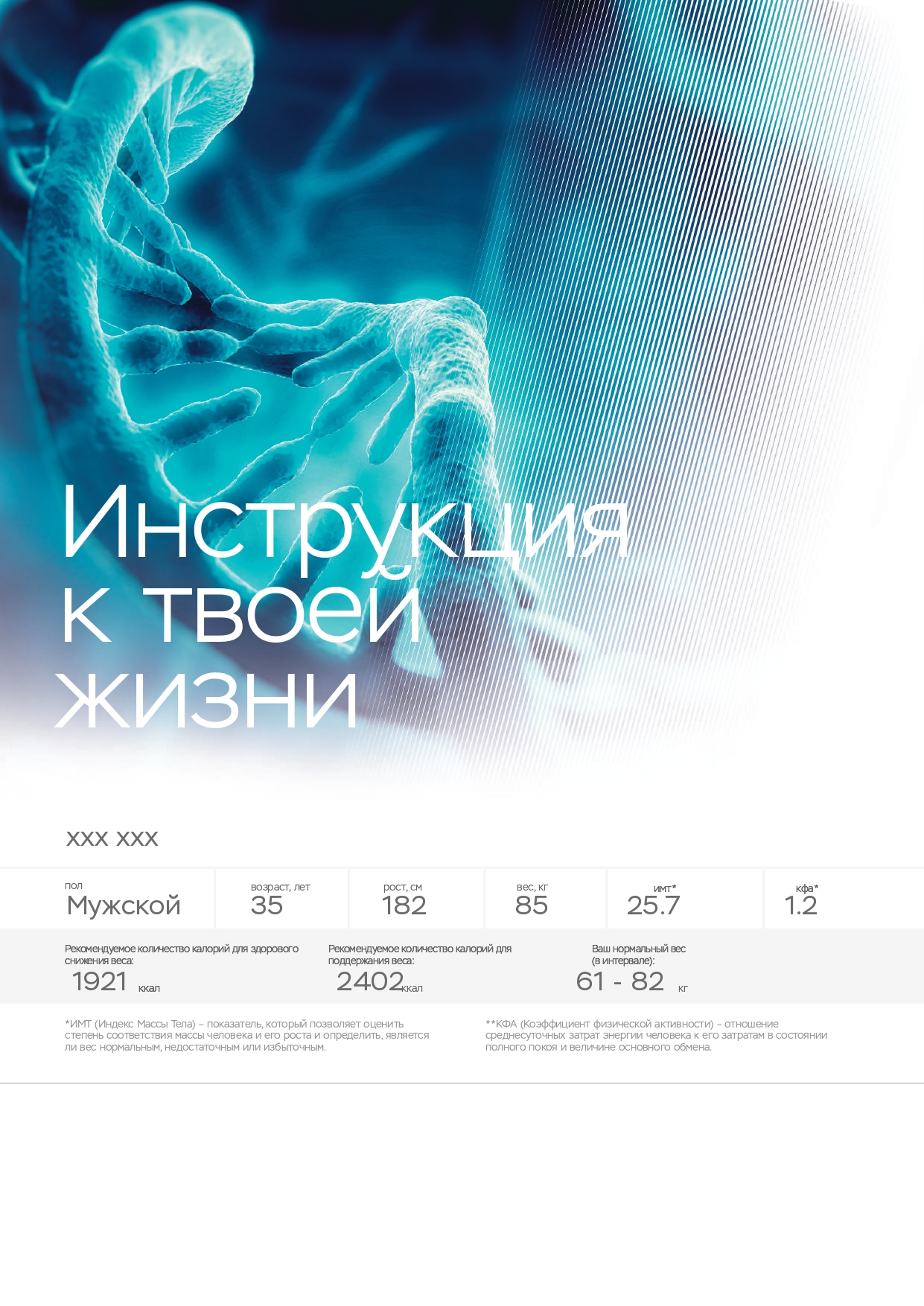 | Отчёт Light (Лайт) | Отчёт Fit (Фигура) | Отчёт Wellness (ЗОЖ) |